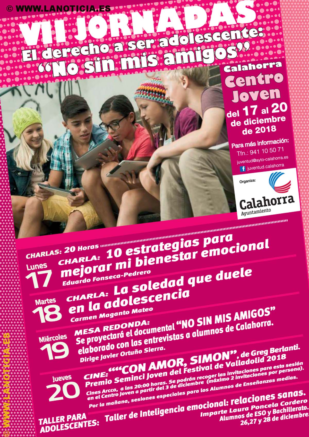 "Las VII Jornadas 'El derecho a ser adolescente' tratarán sobre las amistades en la adolescencia y se desarrollarán del 17 al 20 de diciembre en el Centro Joven Municipal.
